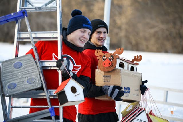Домики для птиц собственноручно сделали болельщики «Автомобилиста» на домашнем матче 10-го декабря. В акции приняли участие талисманы клуба лось Автик и лосенок Автоша, а также победители конкурса «Маленькие мистер и мисс "Автомобилист"».