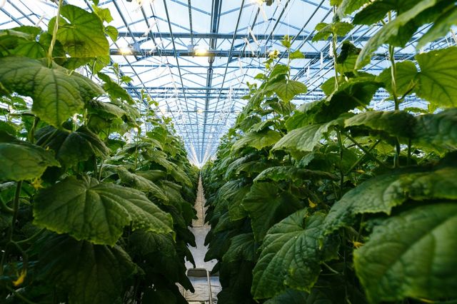 В составе современного комплекса, первая очередь которого была запущена год назад, новые производственные площади занимают 6,5 га. С этого участка хозяйство планирует снимать около 10 тыс. тонн огурцов в год.