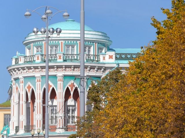 В центре Екатеринбурга начался ремонт дома Севастьянова. Фасад памятника федерального значения затянули защитной пленкой.