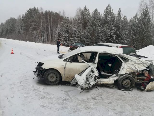 По предварительной версии, водитель Volkswagen Polo, двигаясь со стороны Екатеринбурга к Серову, пошел на обгон, выехал на встречную полосу и cтолкнулся с автомобилем «ГАЗ-3302».