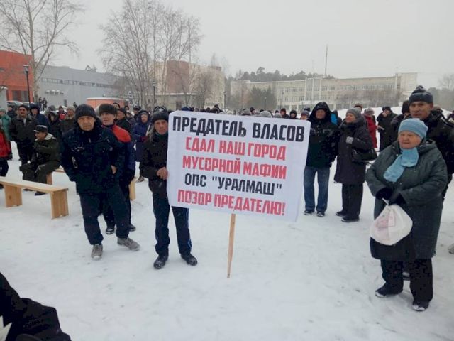 Официально мероприятие прошло под лозунгом «Нет мусорному грабежу!», однако активисты местной ячейки КПРФ держали в руках плакаты и с, «личными» лозунгами. «Предатель (депутат Законодательного Собрания Свердловской области Владимир, – прим. ЕАН) Власов сдал наш город мусорной мафии ОПС «Уралмаш», позор предателю!», — гласил один из них.