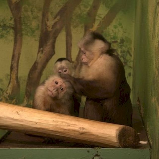 Белоплечий капуцин Бирюза - самая добросовестная мать. Детей кормит, носит на себе и защищает от посторонних.
