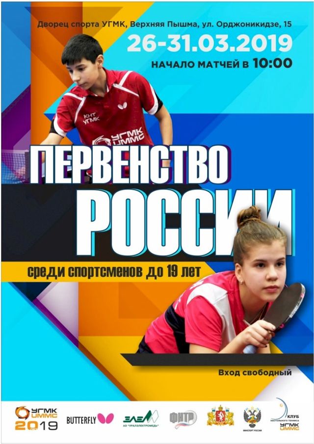 Во Дворце спорта УГМК в Верхней Пышме (Орджоникидзе, 15) стартует первенство России по настольному теннису среди юниоров и юниорок до 19 лет. Соревнования продлятся до 31 марта.
