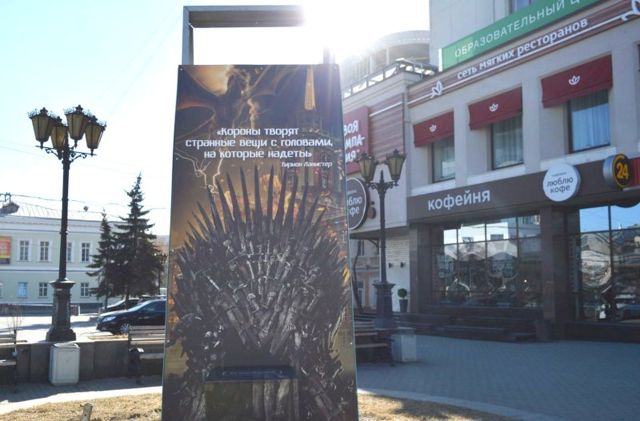 В центре Екатеринбурга отметили выход в свет финального, восьмого сезона культового сериала «Игра престолов». В районе перекрестка улиц 8 Марта-Малышева возле офисного центра «Рубин» установили трон Вестероса.