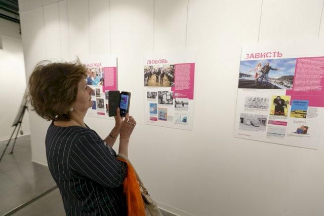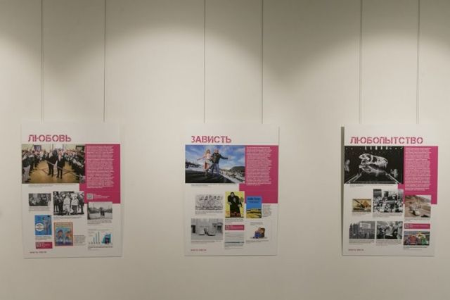 В экспозиции представлены 20 интерактивных полотен. Каждое из них посвящено различным эмоциональным проявлениям – любви, страху, ненависти. Каждое из этих чувств подкреплено запечатленными в разных формах историческими событиями.