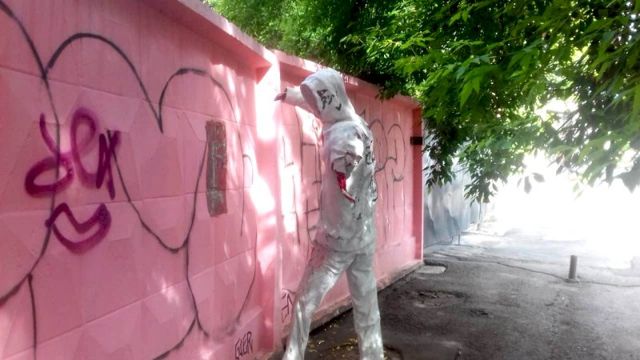 В Екатеринбурге на пересечении улиц Толмачева и Малышева вандалы испортили установленный 10 дней назад объект «дикого стрит-арта» - гипсовую фигуру уличного художника. Скульптуре оторвали руку и измазали красной краской.