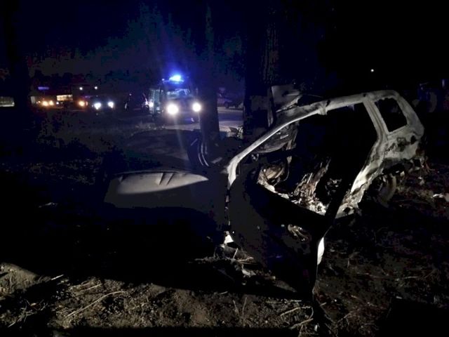Предварительно установлено, что водитель автомашины «Hyundai Santa Fe», двигаясь со стороны п. Пильная не справился с управлением, допустил съезд с проезжей части дороги. Автомобиль врезался в дерево, после чего загорелся. В салоне в момент ДТП находилось два человека, водитель и пассажир, личности которых в настоящее время устанавливаются.