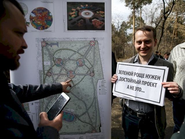 Активисты подробно объясняют, какие изменения ожидают парк, и люди охотно подписывают документ.