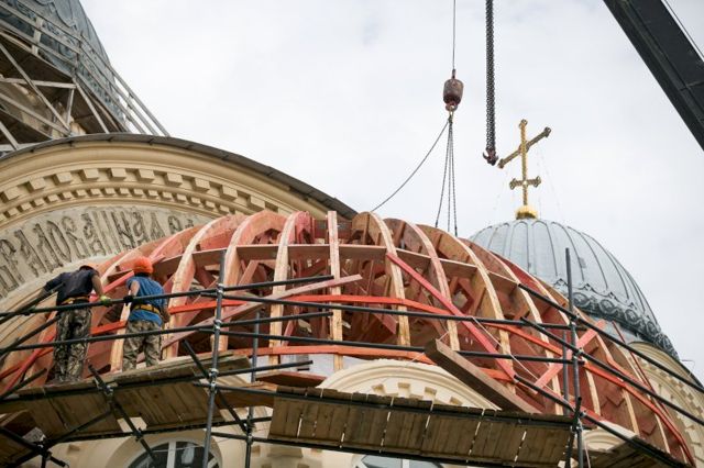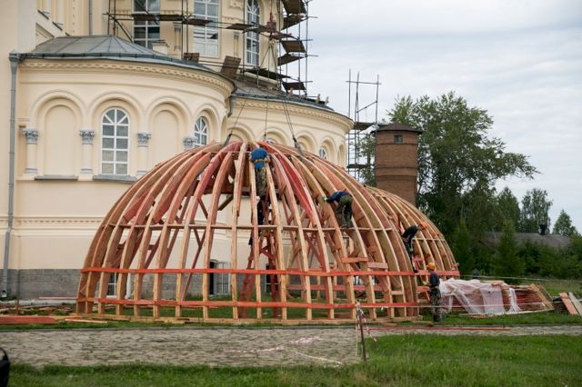 Накануне в праздник Преображения Господня были подняты деревянные полусферы куполов восточной апсиды и южного крыльца Крестовоздвиженского собора. В этом храме находится главная святыня обители – мощи святого праведного Симеона Верхотурского. Работы ведутся при содействии Фонда святой Екатерины.