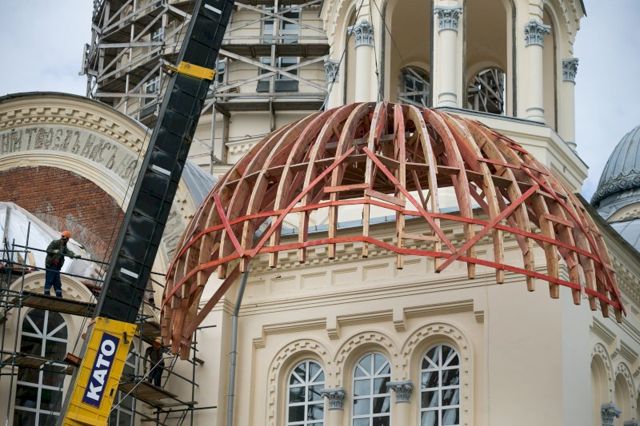 Напомним, что в период советской власти монастырь был закрыт – на его территории размещалась колония для несовершеннолетних. Обитель обнесли колючей проволокой, был «раздет» главный купол Крестовоздвиженского собора – с него сняли металлическую кровлю. После распада Советского Союза, когда зданиям вернули их изначальное предназначение, предпринимались попытки ремонтировать собор. Но в то время не нашлось достаточно компетентных профессионалов и были допущены некоторые ошибки, которые исправляют при теперешней реконструкции. Дело в том, что при обновлении исторических памятников неприменимы стандартные, растиражированные технологии. Сейчас все работы проходят специальную экспертизу, проекты согласуются в федеральном минкультуры. Используются материалы и решения, максимально приближенные к тем, что были использованы при возведении зданий изначально. Так, для полусфер и куполов используют деревянные каркасы, которые потом будут обшиты металлическими листами из «исторического» сплава – цинка и олова.