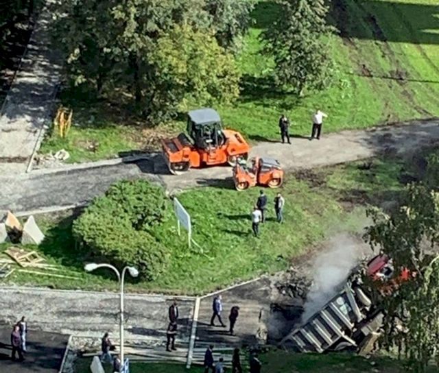В Екатеринбурге на пересечении Ясной и Шаумяна грузовик провалился под асфальт, сообщает паблик «Инцидент Екатеринбург».