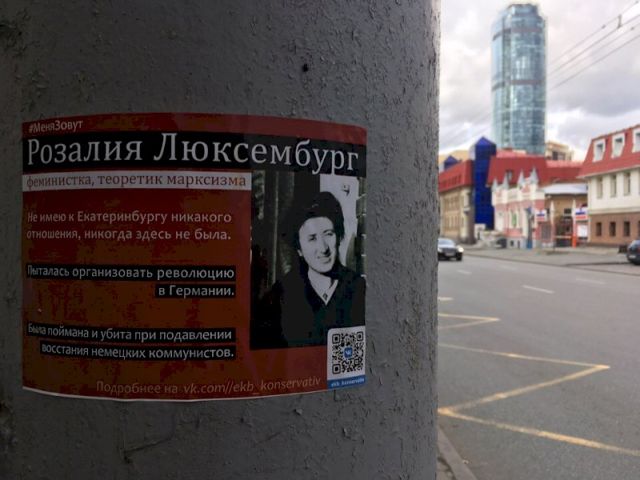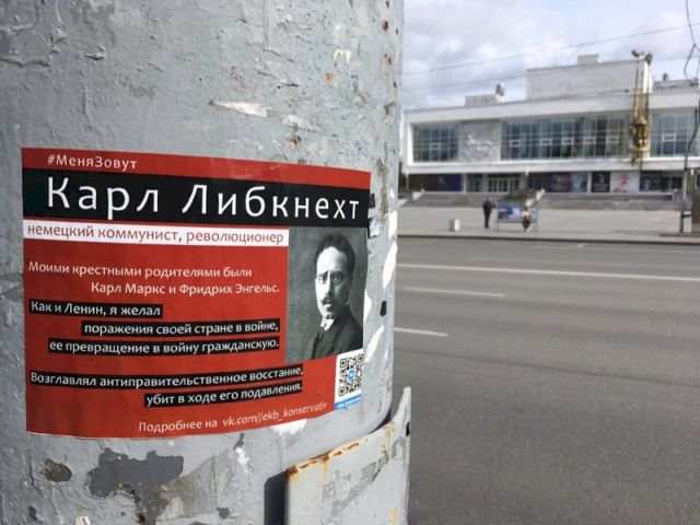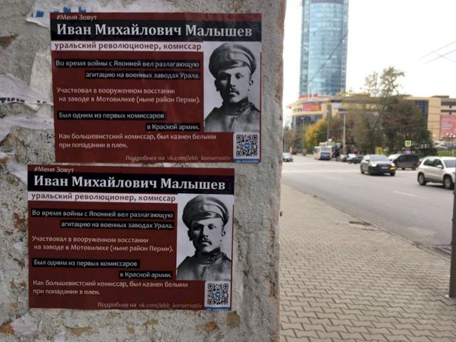 Вандалы атаковали центральные улицы Екатеринбурга. Дома и фонарные столбы с утра оклеены кровавого цвета плакатами с изображением героев революции. Ответственность за акцию взяла на себя православная организация «Екатеринбург консервативный», борющаяся за уничтожение истории, связанной с Гражданской войной.