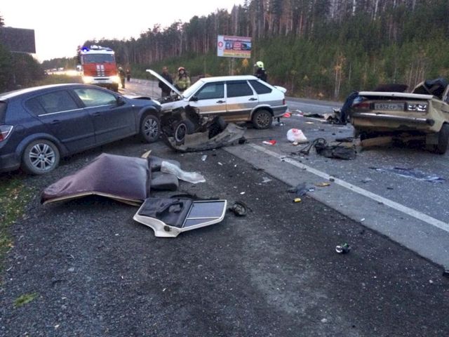 Авария случилась накануне вечером на 16-м км ЕКАД. Водитель ВАЗ-21061 вылетел на встречную полосу, где по касательной столкнулся со встречным МАН, после чего вернулся на свою полосу движения и врезался в попутные Opel Astra и ВАЗ-21140. После столкновения грузовик съехал с дороги.