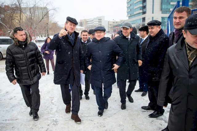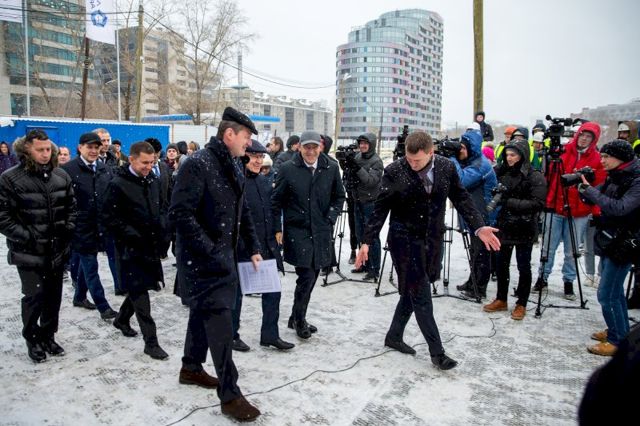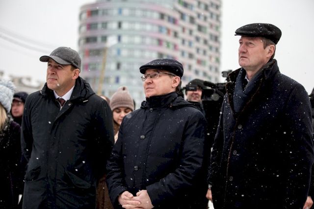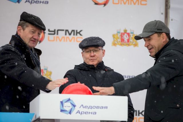 На символическую красную кнопку, запускающую таймер, общими усилиями нажали генеральный директор Уральской горно-металлургической компании Андрей Козицын, министр строительства и ЖКХ РФ Владимир Якушев и губернатор Свердловской области Евгений Куйвашев.