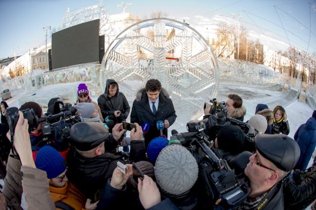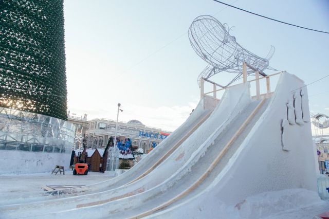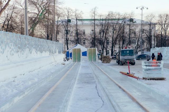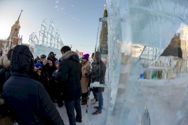 Сегодня мэр Екатеринбурга Александр Высокинский провел техническую приемку ледового городка. Главная праздничная площадка города официально откроется для посетителей завтра, 27 декабря. Мэр пообещал журналистам лично протестировать качество самой большой горки.