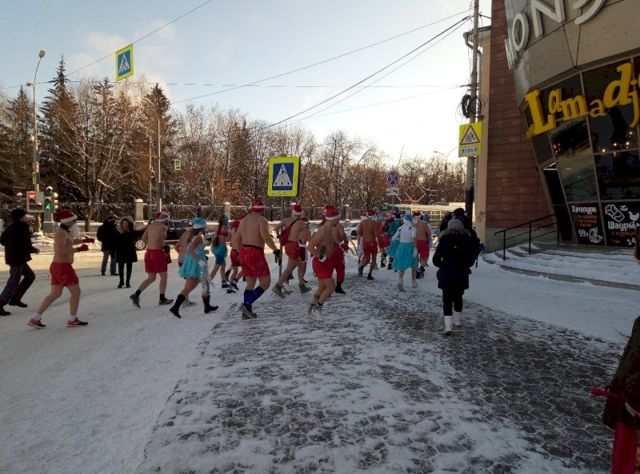 По Екатеринбургу пробежала группа оголенных людей с атрибутами Снегурочек и Дедов Морозов.