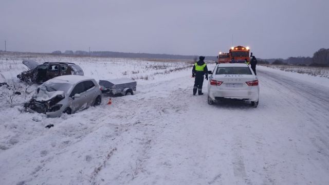 На трассе занесло Toyota Auris, затем машина вылетела на полосу встречного движения, где произошло столкнулась с Renault Duster.