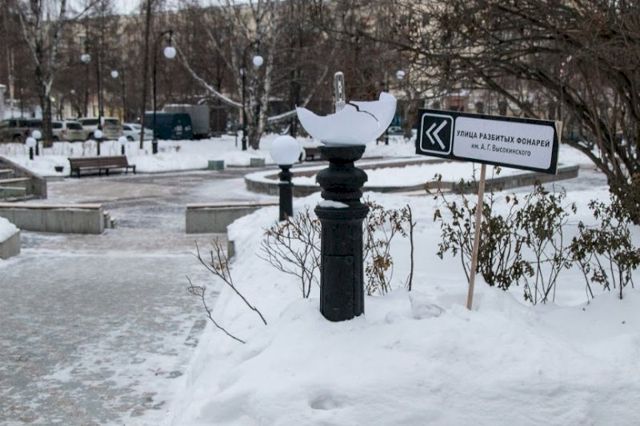 «Редакция решила обратить внимание на новый городской тренд и выставила указатели «Улица разбитых фонарей имени А.Г. Высокинского», которые отражают реальную ситуацию со сквером за Оперным. Надеемся, мода разбивать фонари пройдет, и у горожан не будет потребности портить объекты — ни ради хулиганства, ни ради протеста против чего бы то ни было», - заявили в 66.ру.