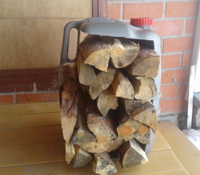 Интересное приспособление для хранения дров продемонстрировал Мальгин Василий из Белоярского района. Он сделал дровницу из старой канистры.