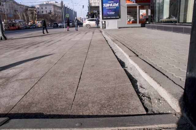 Весь смысл гранитных тротуаров на фантастическую сумму более 300 млн рублей был в том, что «гранит – вечный материал». Александр Высокинский уверял журналистов, что покрытие из брусков толщиной 80-100 мм не пойдет волнами на следующий год, как это происходило с бехатоном. На Ленина тротуар выгнулся через три месяца. В целом возникают большие вопросы к «зимним технологиям» подрядчика и квалификации рабочих.