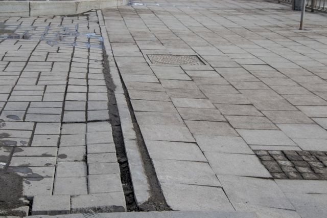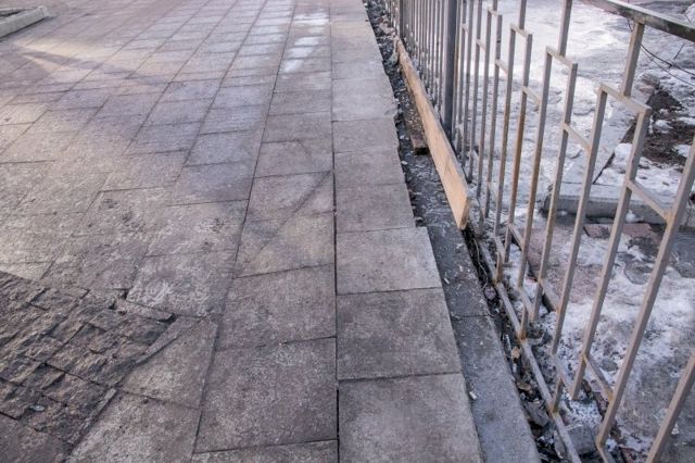 Швы шириной в полсантиметра-сантиметр, срезанные дорожные знаки, перепады высот. Проще говоря, плитка торчит, разъезжается и на новый тротуар не похожа.