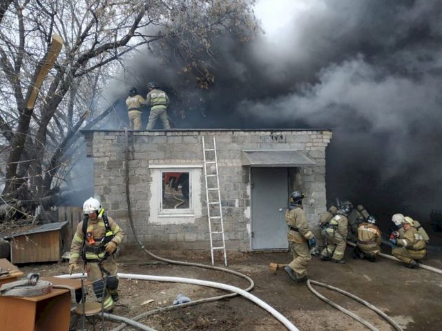В Каменске-Уральском пожарные потушили горящий ангар на улице Октябрьской.