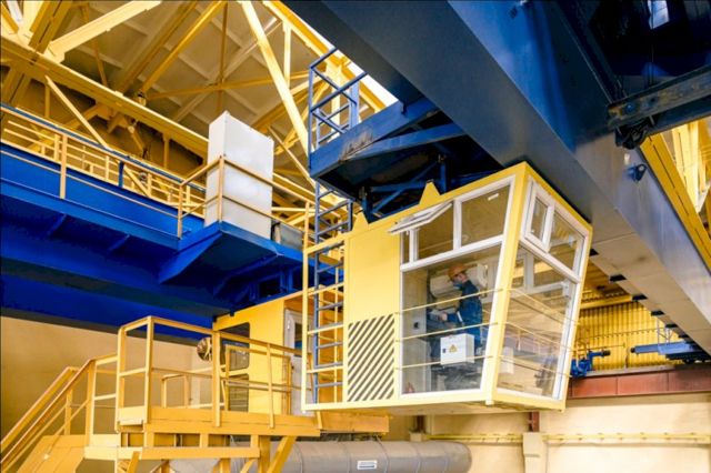Современный двухбалочный мостовой кран отечественного производства имеет грузоподъемность 5 тонн. Он состоит из продольной балки длиной в 28,5 метров, грузовой тележки с крюком и электродвигателем. В отличие от своего предшественника, управление организовано с помощью частотных преобразователей. На кране будет смонтирована современная кабина управления. Движение агрегата машинист будет регулировать с помощью джойстиков.