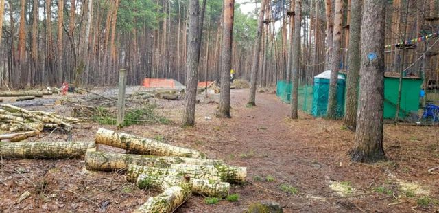 На кадрах запечатлены уже распиленные деревья, очевидно, подготовленные к вывозу, а также рабочие и спецтехника. По всей вероятности, работы проводятся в рамках масштабного благоустройства зеленой зоны, развернутого в прошлом году.
