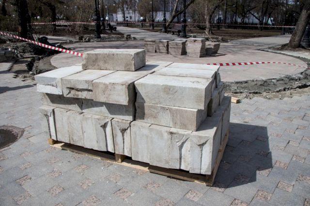 В Екатеринбурге в сквере за Театром оперы и балета снова меняют гранитную плитку. Благоустройство площадки сопровождалось скандалами и отставками, объект сдали с пролонгацией сроков в декабре 2019-го. И вот сегодня подрядчики начали точечно менять гранитную мозаику. Как объяснил ЕАН бригадир одной команды, «это было неизбежно».