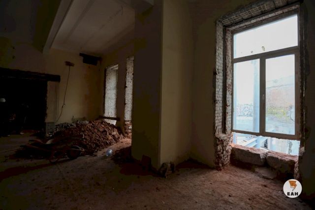 В выставочном зале отделочные работы подходят к завершению, сейчас рабочие занимаются паркетом, все системы охраны установлены, зал на финальной стадии готовности.
