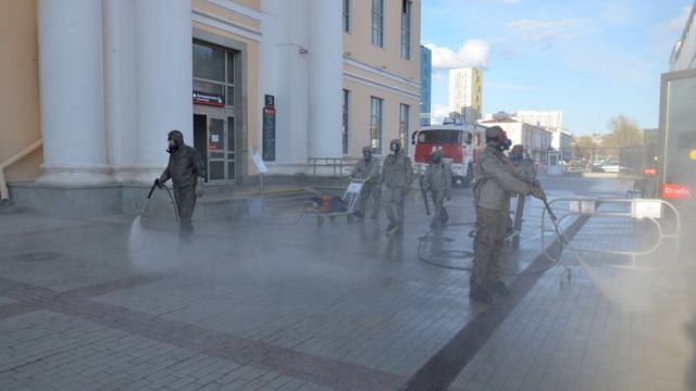 В Екатеринбурге территории около интернатов моют военные, а около больниц – обычные коммунальщики30 апреля 2020 в 12:44