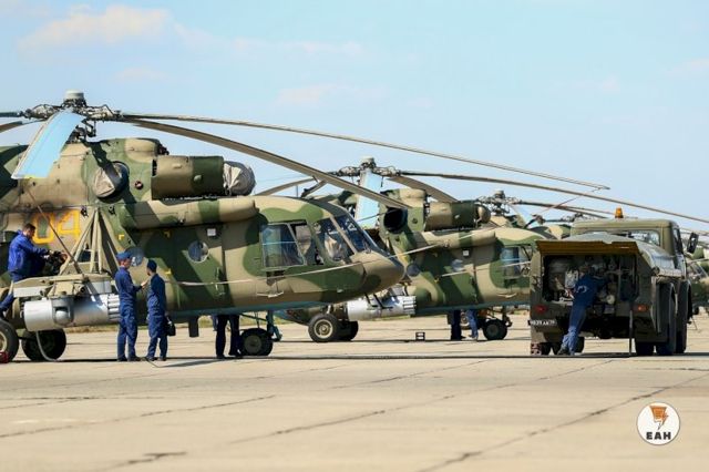 «Ми-8МТВ5 - это многоцелевой вертолет, разработанный в начале 1960-х годов. Является самым массовым вертолетом в мире, а также входит в список самых массовых вертолетов в истории авиации. Именно эти вертолеты встречают космонавтов при их возвращении на землю. Предназначен для перевозки различных грузов внутри грузовой кабины и на внешней подвеске, почты, пассажиров, десанта, а также прикрытия наземных сил и ведения воздушной разведки днем и ночью», - рассказали ЕАН в штабе ЦВО.