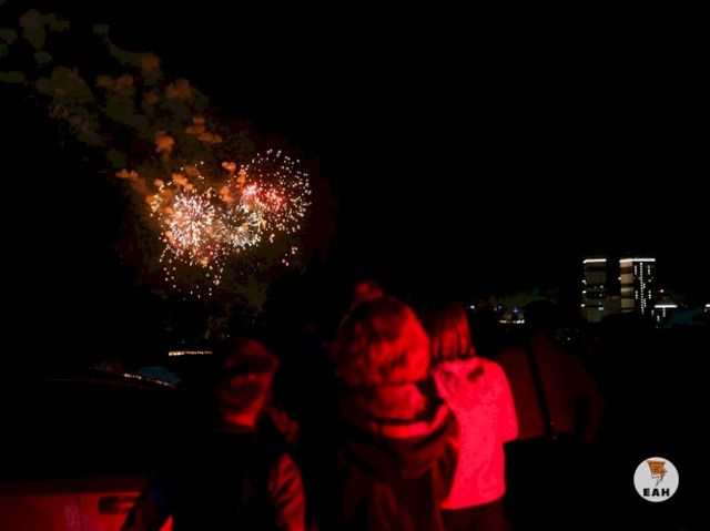 Салют действительно запускался с территории главного городского парка. При этом на метеогорке вся парковочная стоянка была заполнена автомобилями. По оценкам корреспондента ЕАН в парке и на самой метеогорке присутствовало не менее 200 человек.