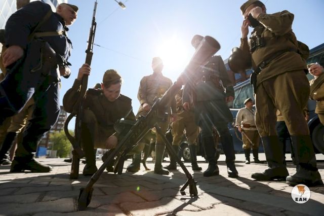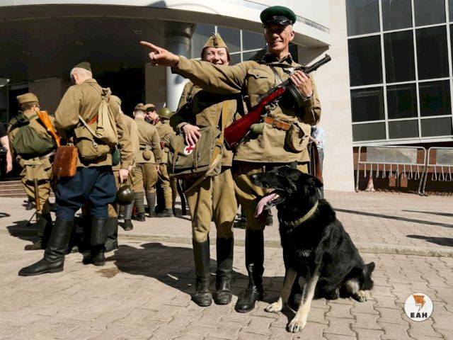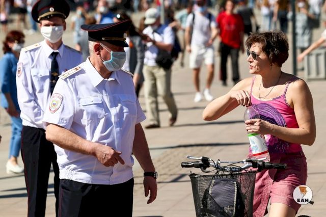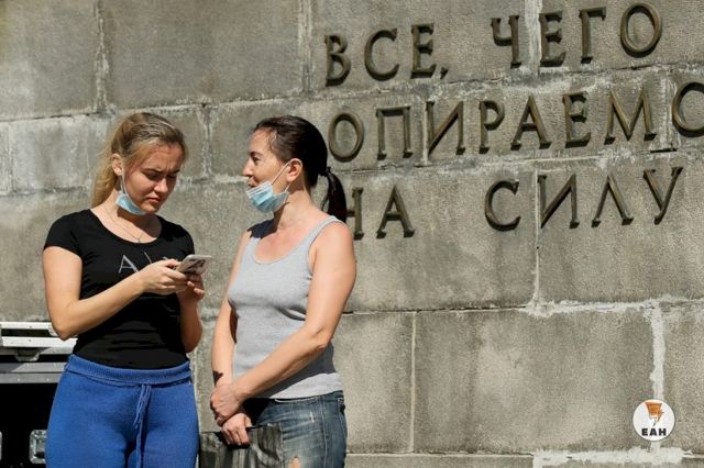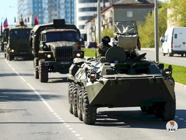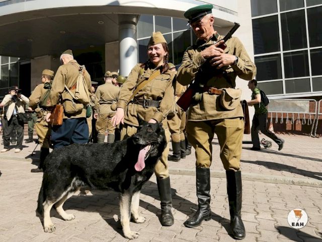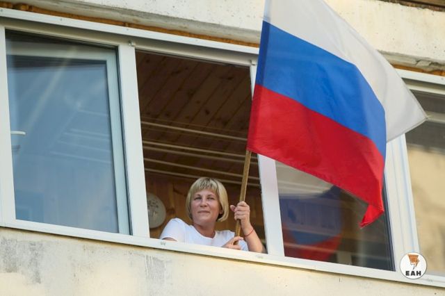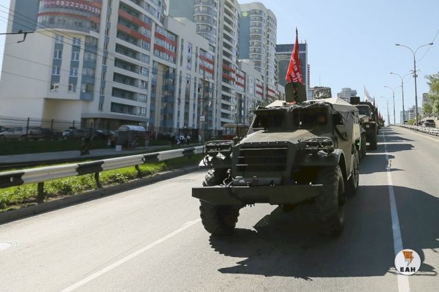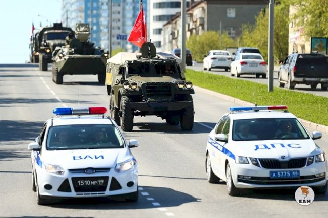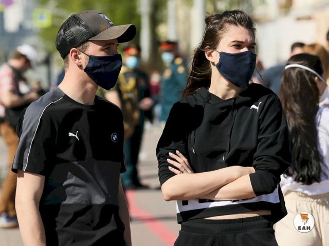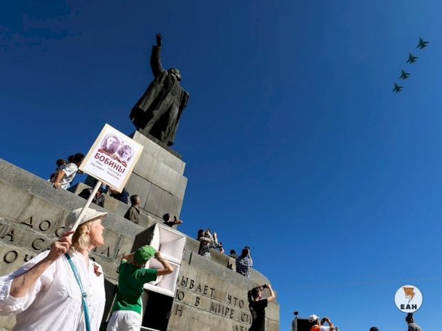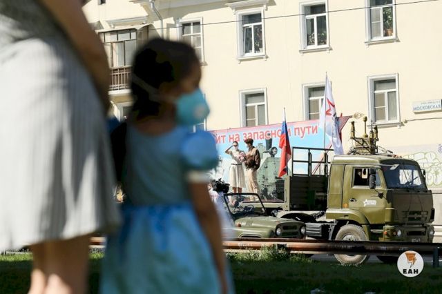 С самого утра в центре города было много гуляющих людей, которых не пугала опасность получить штраф. Горожане приветствовали авиапарад и проход по центру военной техники.