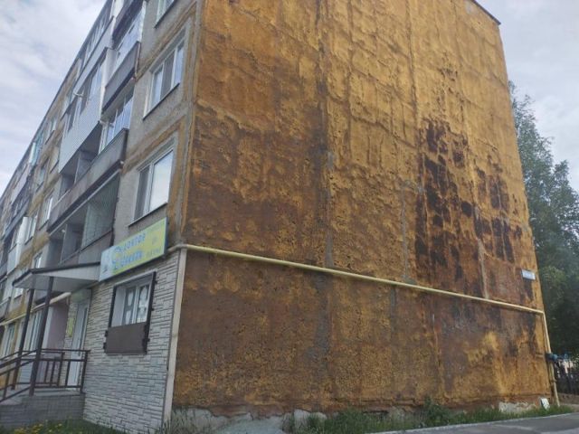 Рыжей пеной фасады серых зданий разбиты на клетки, а с торца запенены не только швы, но и вся поверхность бетонных плит. Фото таких домов прислал в редакцию ЕАН турист, посетивший Невьянск.