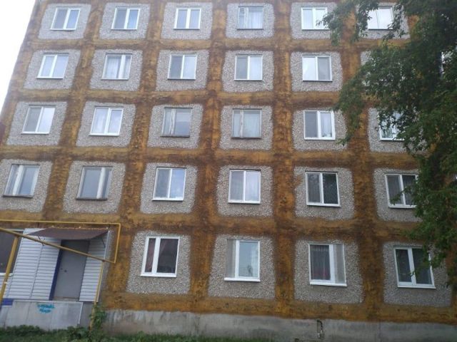 Сами жители города говорят, что к странному облику таких домов уже привыкли. В управляющей компании, которая обслуживает одну из таких пятиэтажек, ЕАН сообщили, что «их вообще запенили еще в 90-е».