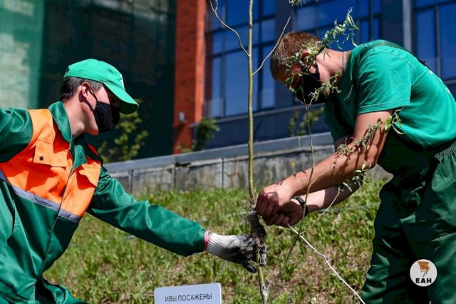 Директор компании «Территория ландшафтных решений Green Park» Юлия Сорокина отмечает, что высаженные сегодня деревья – сорта «ива свердловская извилистая коллекции Шабурова № 2».