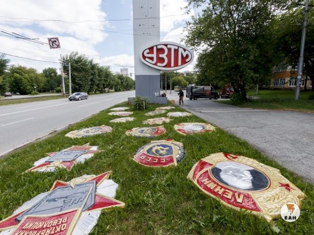 В Екатеринбурге в преддверии парада Победы, который пройдет 24 июня, отреставрировали тридцатиметровую стелу с орденами Уралмашзавода, расположенную на улице Машиностроителей. Все 11 орденов, украшавших монумент, были обновлены.