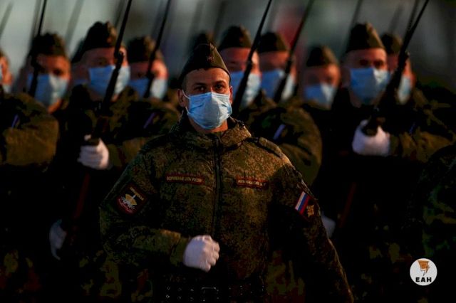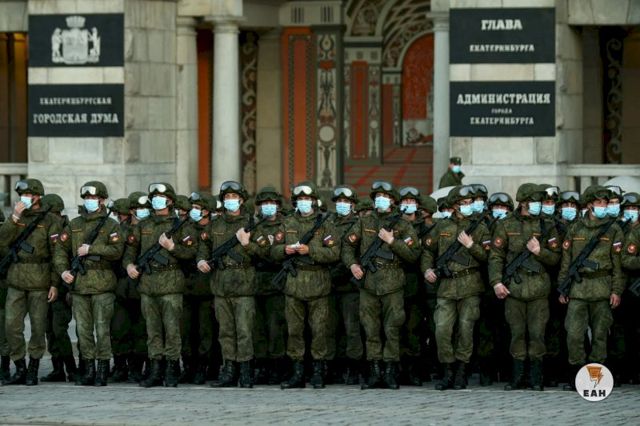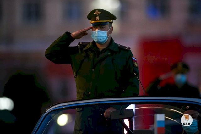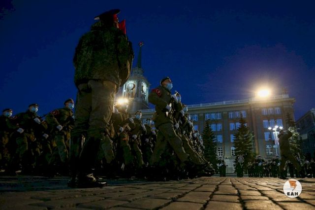 Военнослужащие провели заключительную ночную тренировку парада Победы в Екатеринбурге, сообщает пресс-служба ЦВО.
