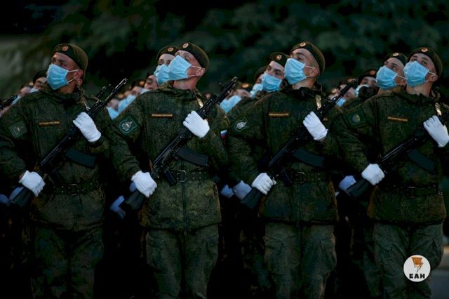 Кроме того, в парадном строю прошли расчеты управления штаба и авиационного объединения Центрального военного округа, коробки военнослужащих мотострелкового, железнодорожного соединений, и единственный парадный расчет военной полиции за Уралом.