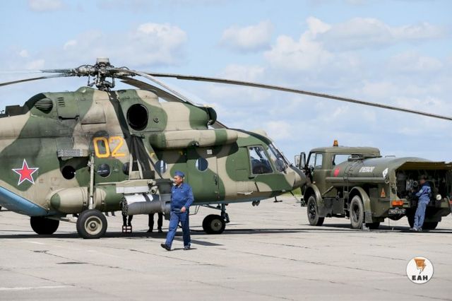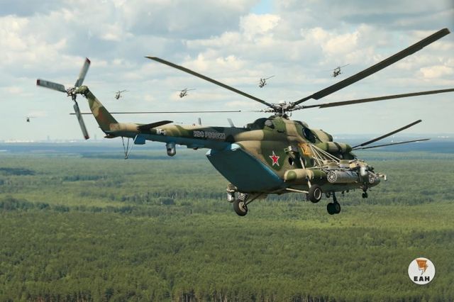 Первым летит тяжелый транспортный вертолет Ми-26, за ним следует звено из четырех вертолетов Ми-24, потом звено Ми-8. На этом вертолетная часть завершается. Затем в небе появляются военно-транспортные самолеты, которые используются для транспортировки грузов и людей и которые не участвуют в непосредственном бою. Это небольшие L-410, Ан-26, Ан-12 – все они винтовые и Ту-134-УБЛ – уже с турбореактивными двигателями. Затем пойдет боевая авиация: пара Су-24, звено Су-34 и звено самых быстрых МиГ-31.