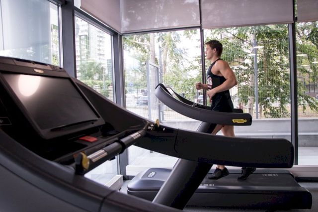 У всех гостей академии на входе проверяют температуру и обрабатывают антисептиком руки. Если нет маски, ее выдают. Снять ее можно будет только в зале. В тренажерке Академии единоборств пустынно. По нормам безопасности посетители могут тренироваться из расчета не больше одного человека на 4 кв. м.