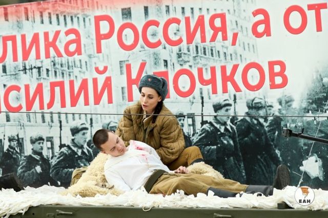 Открыла военный парад театрализованная реконструкция «Фронтовой путь от сорок первого года до Победы», в ходе которой по главной площади уральской столицы проехало 11 грузовиков с платформами-сценами, артистами в военной форме с оружием времен Великой Отечественной войны.