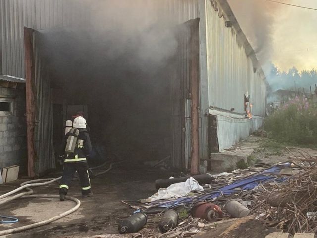 Из горящего здания пожарными были эвакуированы 6 газовых баллонов. В помещениях ангара находились несколько емкостей с техническим маслом, перехода огня на них не допущено.