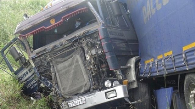 От удара фура съехала в кювет. Полную картину произошедшего восстанавливают сотрудники ГИБДД.