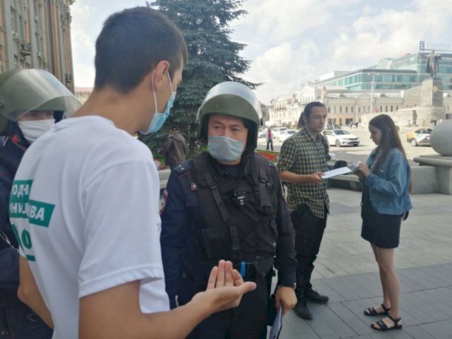 Прибывшие к мэрии сотрудники полиции попытались проверить у Постникова паспорт. Он предъявлять документ отказался, сославшись на то, что существует лишь 4 основания для проверки, их случай в этот перечень не входит. Точка по сбору подписей расположилась на муниципальной земле, а не на участке администрации, работе чиновников и свободному проходу горожан они не мешают.