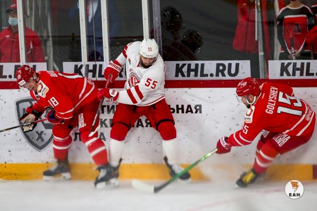 Активность слегка растерявшихся гостей «шоферы» непринужденно гасили через контроль шайбы. Разумеется, такой прием не удалось провернуть в меньшинстве. Результатом первого удаления у «Автомобилиста» на 14-й минуте стал гол Теденбю — швед разобрался на штанге и замкнул передачу Дэнфорта.
