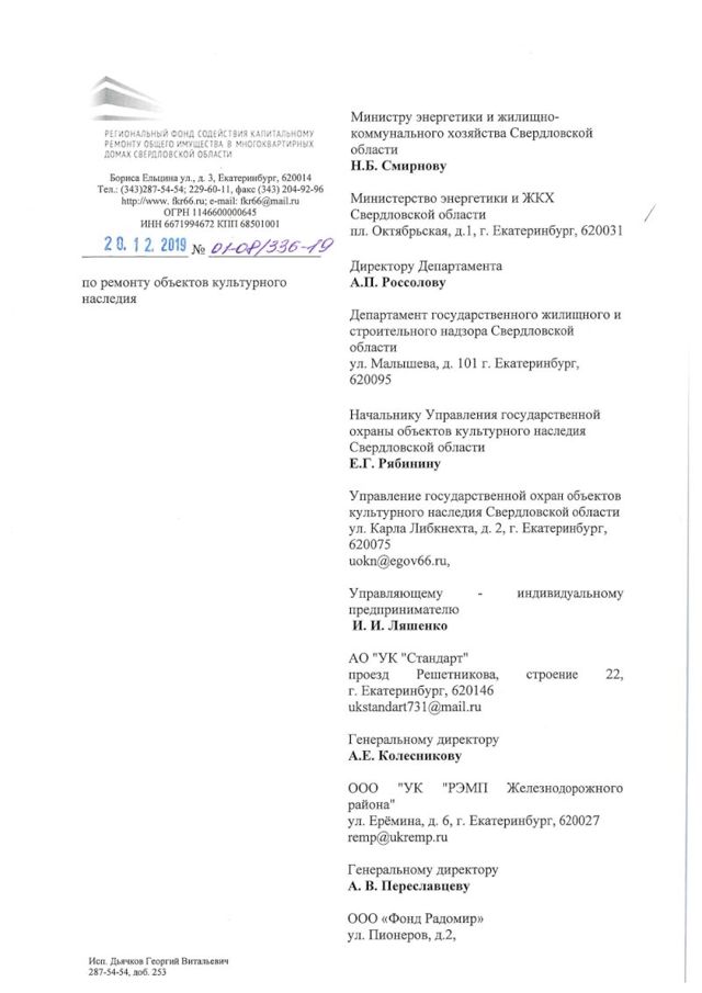 Далее в письме подчеркивается, что указанный объект культурного наследия аварийным не признавался, общий уровень износа по дому составляет 45%, общедомовое имущество исправно.