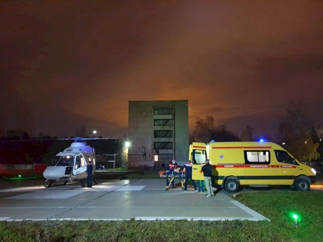 Вертолет, на котором находится ребенок, приземлился на оборудованной площадке. После этого пациента должны доставить в областную детскую клиническую больницу №1.
