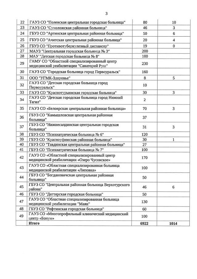 Свердловский Минздрав выпустил приказ со списком коечного фонда, который должен быть перепрофилирован под COVID-19 «в случае возникновения вспышек и массовой заболеваемости».